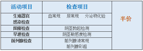 男性健康检查半价活动详情