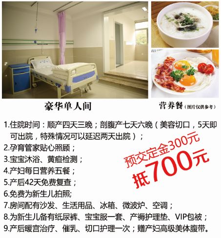 为了满足孕妈咪分娩的不同需求,提供全程更精致的呵护,自2018年1月1日起,对产科分娩套餐的价格执行变更。凡是2018年1月1日前预定的套餐依然按照之前的价格收取,1月1日后预定的,按照新的价格收取。详情如下: